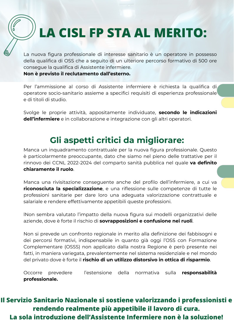 ASSISTENTE INFERMIERE: la Cisl Fp sta sul merito!